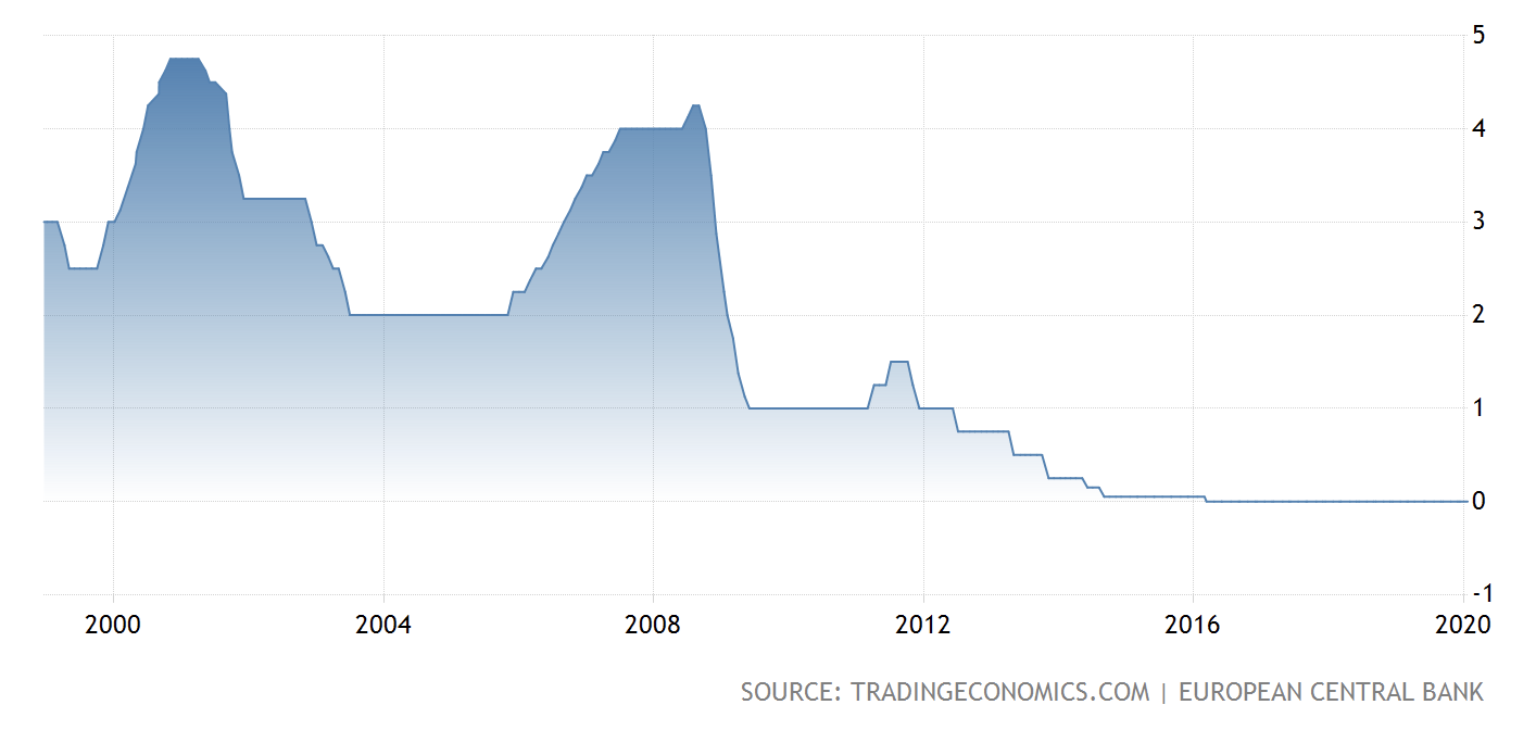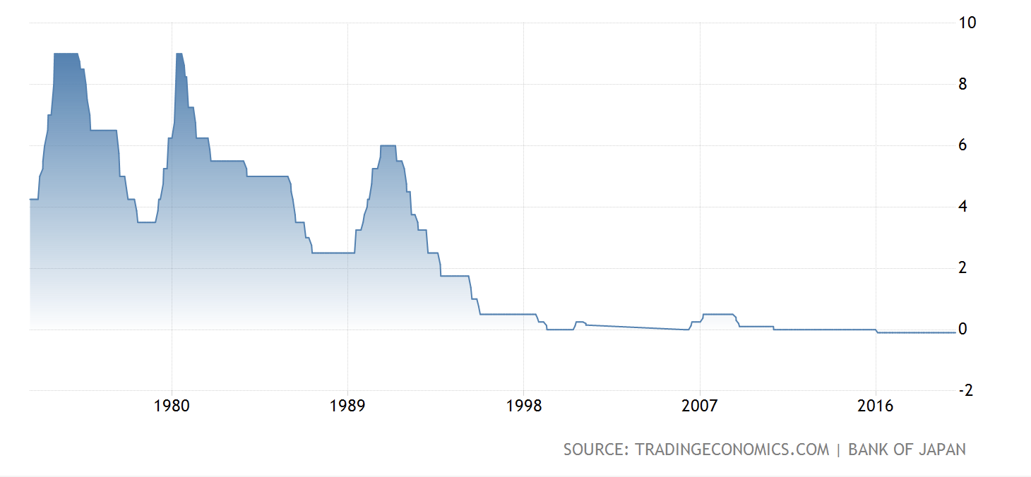 To be more exact, this graph is the cost of money set by the Central Bank of Japan. As you can see, since year 2000, money has a cost of nothing where the sun rises first.