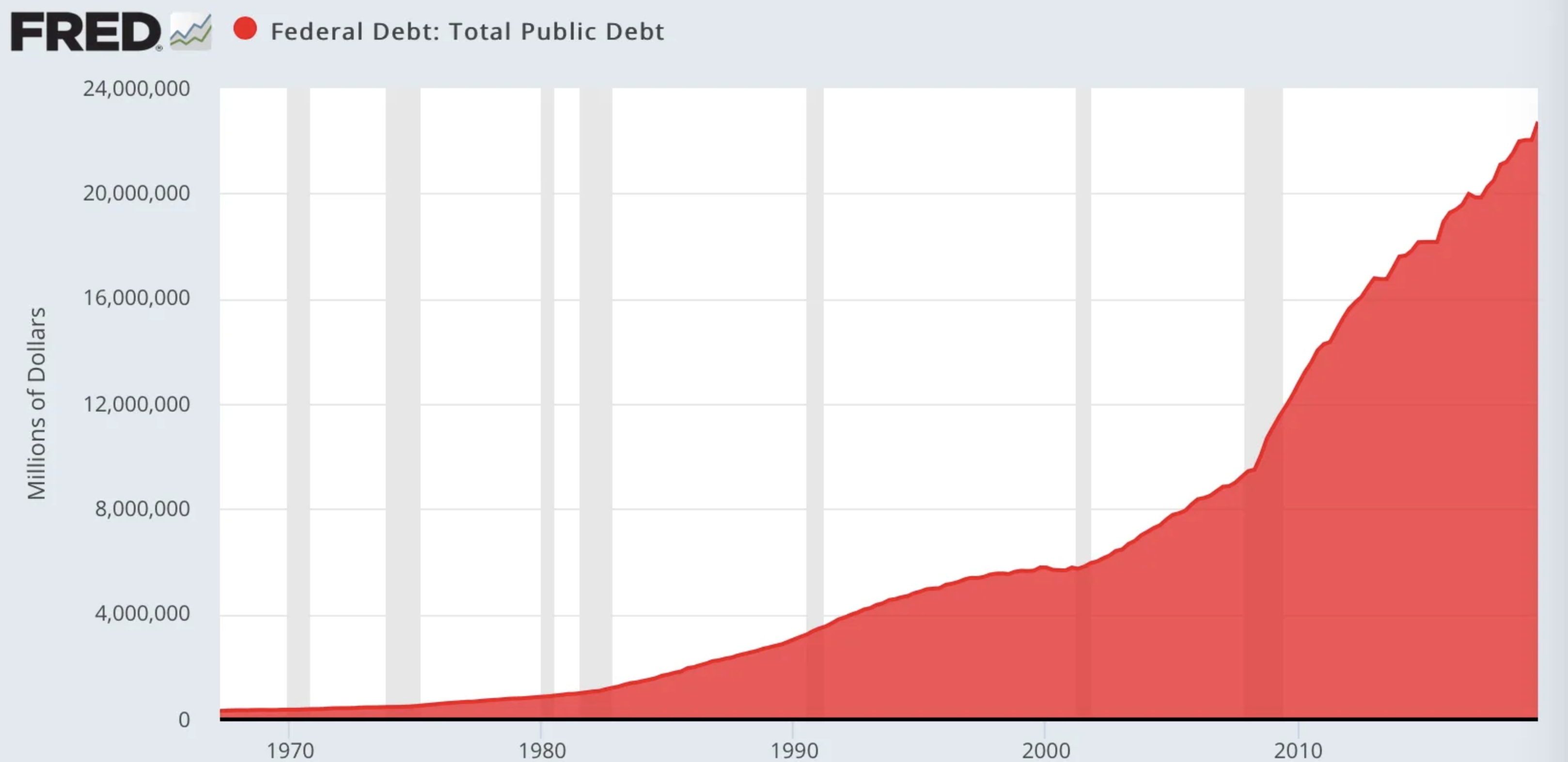 - Money cost zero, so the states gorge on cheap credit and take on debt like never before...
