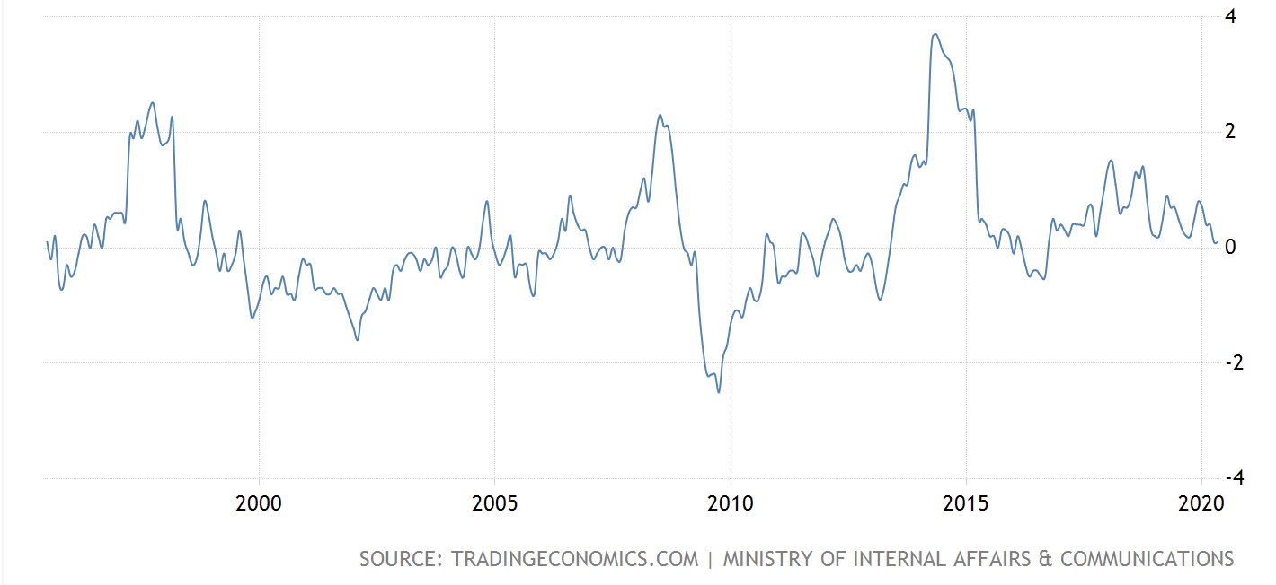 Below is the Japan CPI inflation over the past 25 years. Please bear in mind that during this 25 years of approximately 0% CPI average, the Bank of Japan went from having a balance sheet of less than Β₯60tr in 1995 to more than Β₯600tr in 2020. 1,000% is quite something in terms of explosion of money creation. But still... zero inflation...