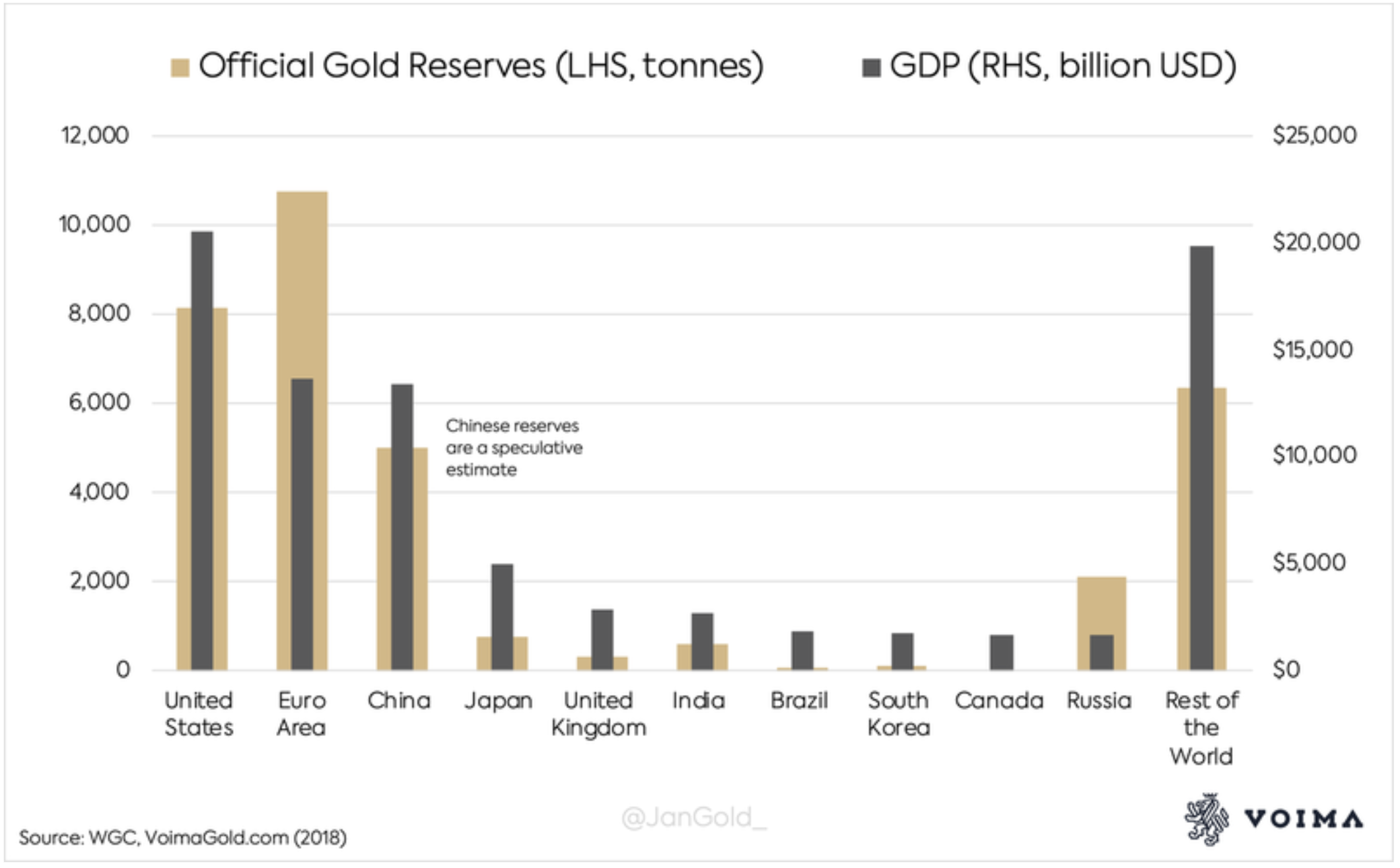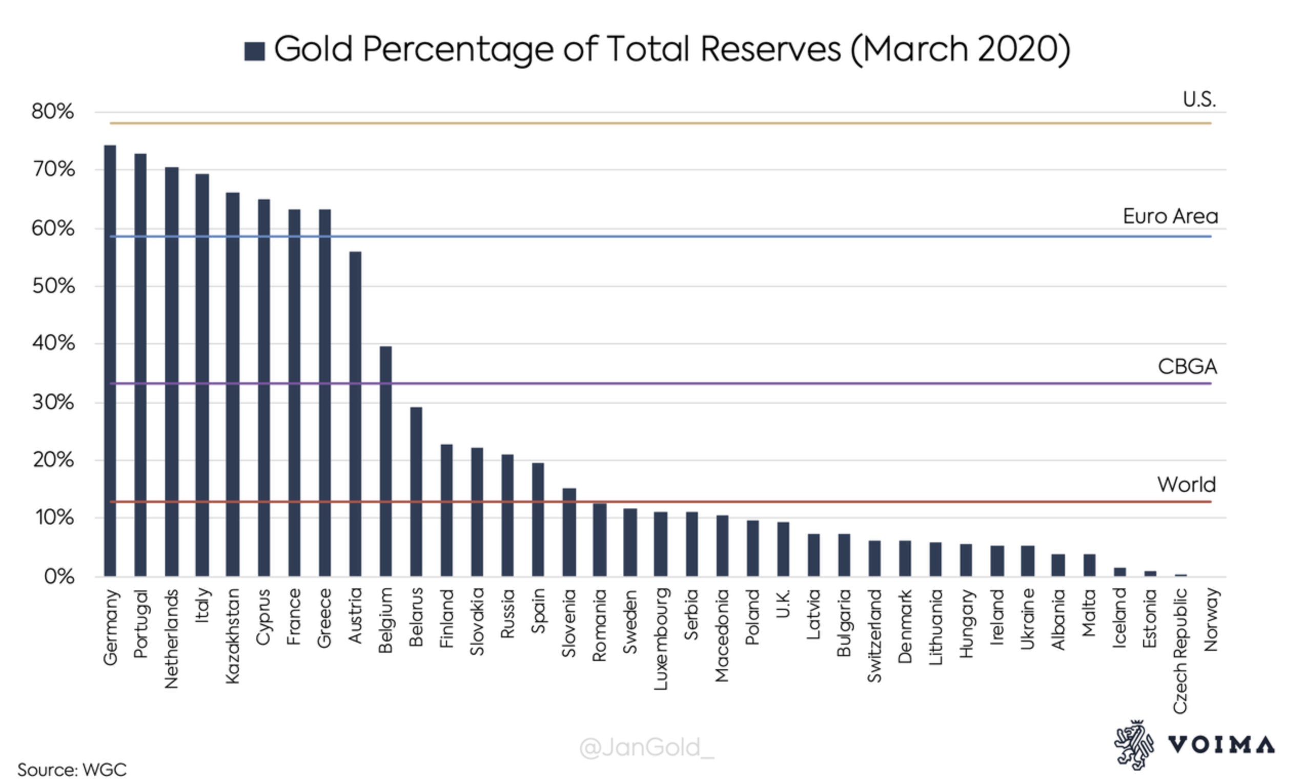In addition to this, if the US is at the top of the range with 76% of its reserve in Gold, you have China with 3% (well, officially, this is before the discovery of fake gold...), and Japan is at the same 3% too. And I suppose you saw Switzerland is at 6%! For a country who is supposed to have so much gold reserve ๐ค! Or maybe the gold is stored in commercial banks' safes for the benefit of the wealthies ๐...