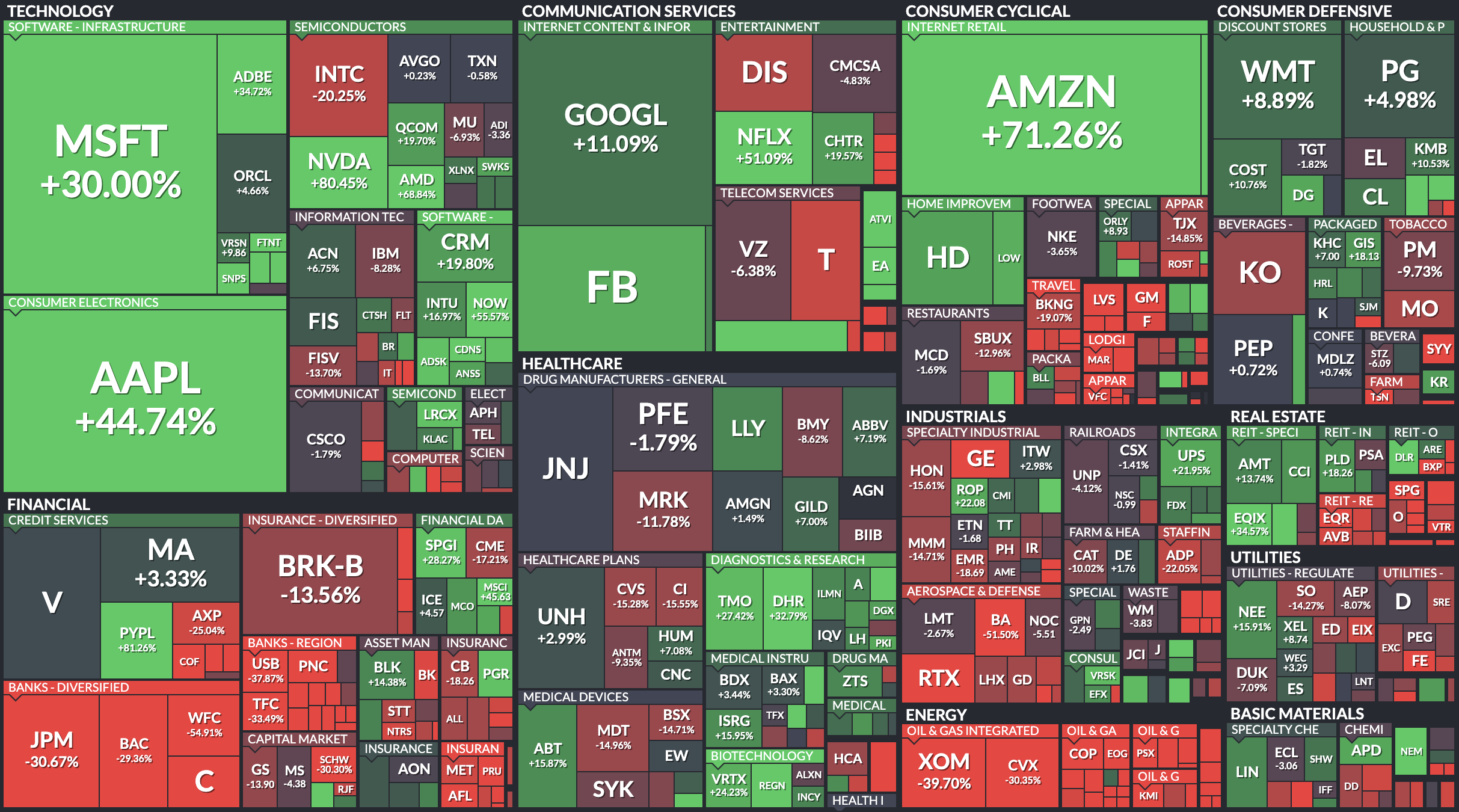 The infographic above says it all. The world right now is made of Technology (Tech), Finance (including FinTech), Communication (including AdTech), Healthcare (including BioTech), and the rest is mostly Amazon & Co π₯³. Basically, the world of value and capital is a world of Tech. The green boxes are mostly making up the new world, whereas the red boxes are mostly representative of the old world, disappearing fast. A company of $72bn valuation called Caterpilar (CAT) is a tiny square in this map. Go find it! What is $72bn of tractors and bulldozers in a world of Tech?